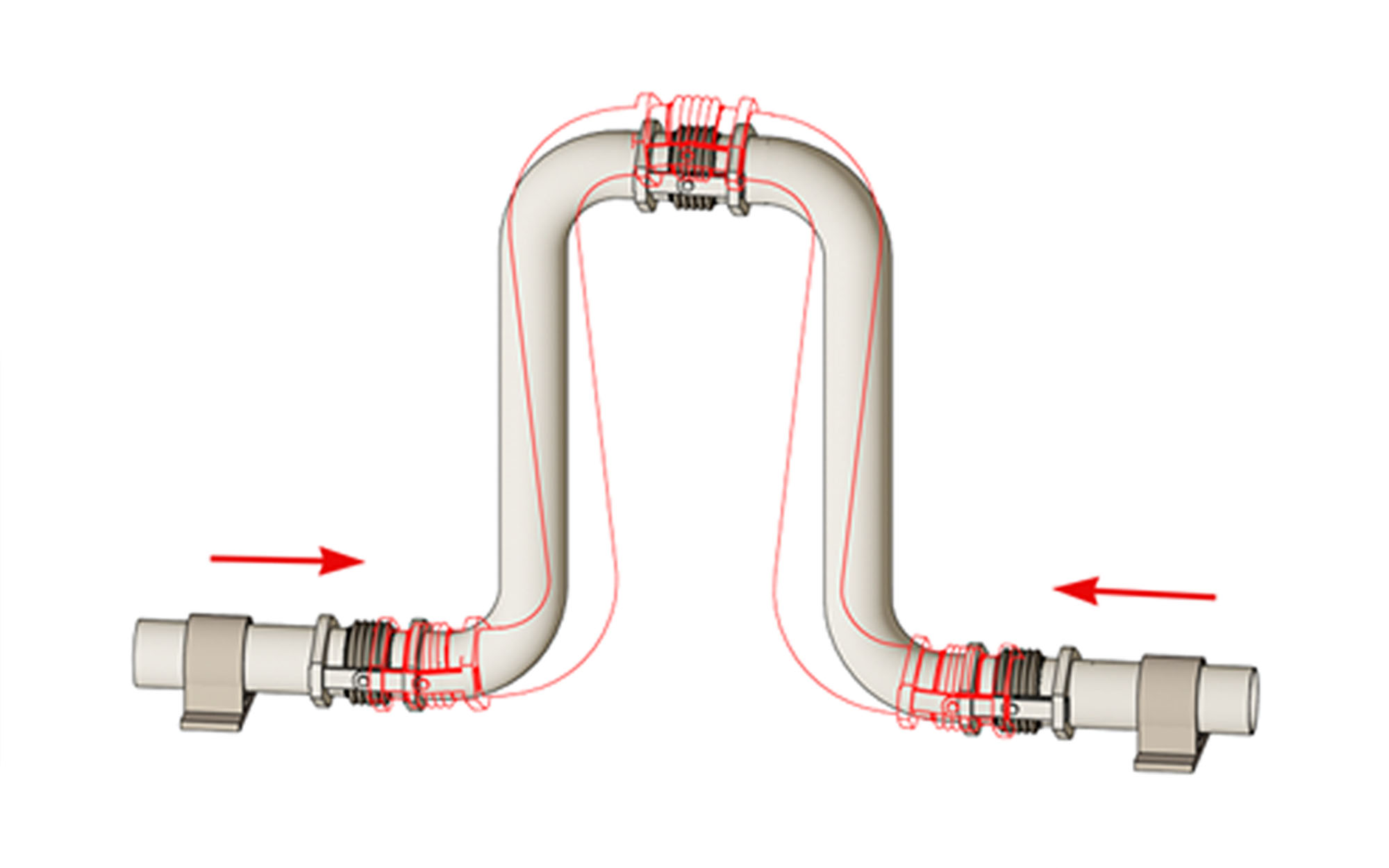 Adicionalmente es importante resaltar que, donde sea físicamente imposible aplicar bucles de expansión para absorber los movimientos de la tubería, se deben utilizar juntas metálicas de expansión o mangueras metalizas flexibles. En la imagen se muestra un ejemplo de Junta Metálica de Deslizamiento Axial “que consisten de dos segmentos donde uno se desliza dentro del otro permitiendo absorber los movimientos axiales” (Singh, K.).